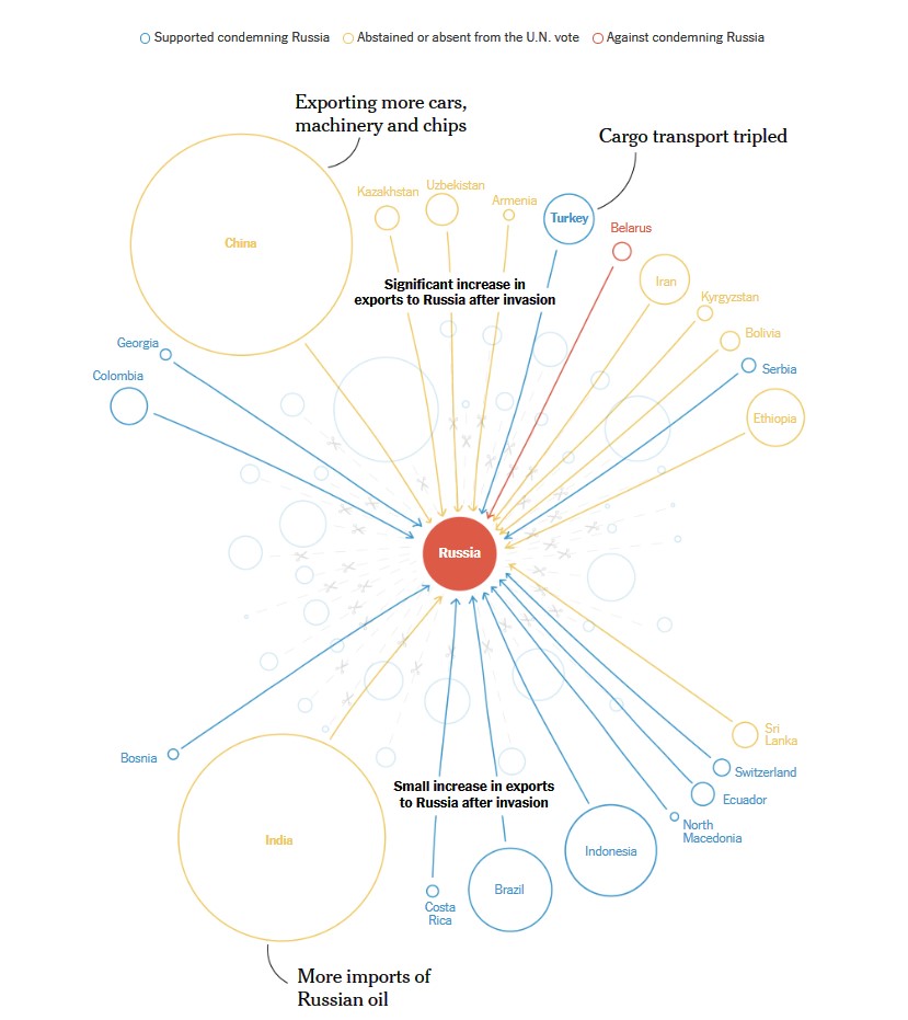 Nhưng phương Tây chưa bao giờ giành được phần lớn thế giới như vẻ ngoài ban đầu. 47 quốc gia khác bỏ phiếu trắng hoặc bỏ phiếu, trong đó có Ấn Độ và Trung Quốc. Kể từ đó, nhiều quốc gia “trung lập” đã cung cấp hỗ trợ kinh tế hoặc ngoại giao quan trọng cho Nga.